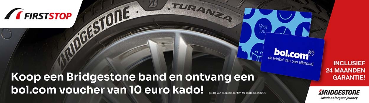 September is dé maand om uw voertuig klaar te maken voor elk seizoen met nieuwe banden van Bridgestone! Alleen bij First Stop ontvangt u in deze actieperiode een Bol.com waardebon bij de aanschaf van 2 of 4 Bridgestone banden.